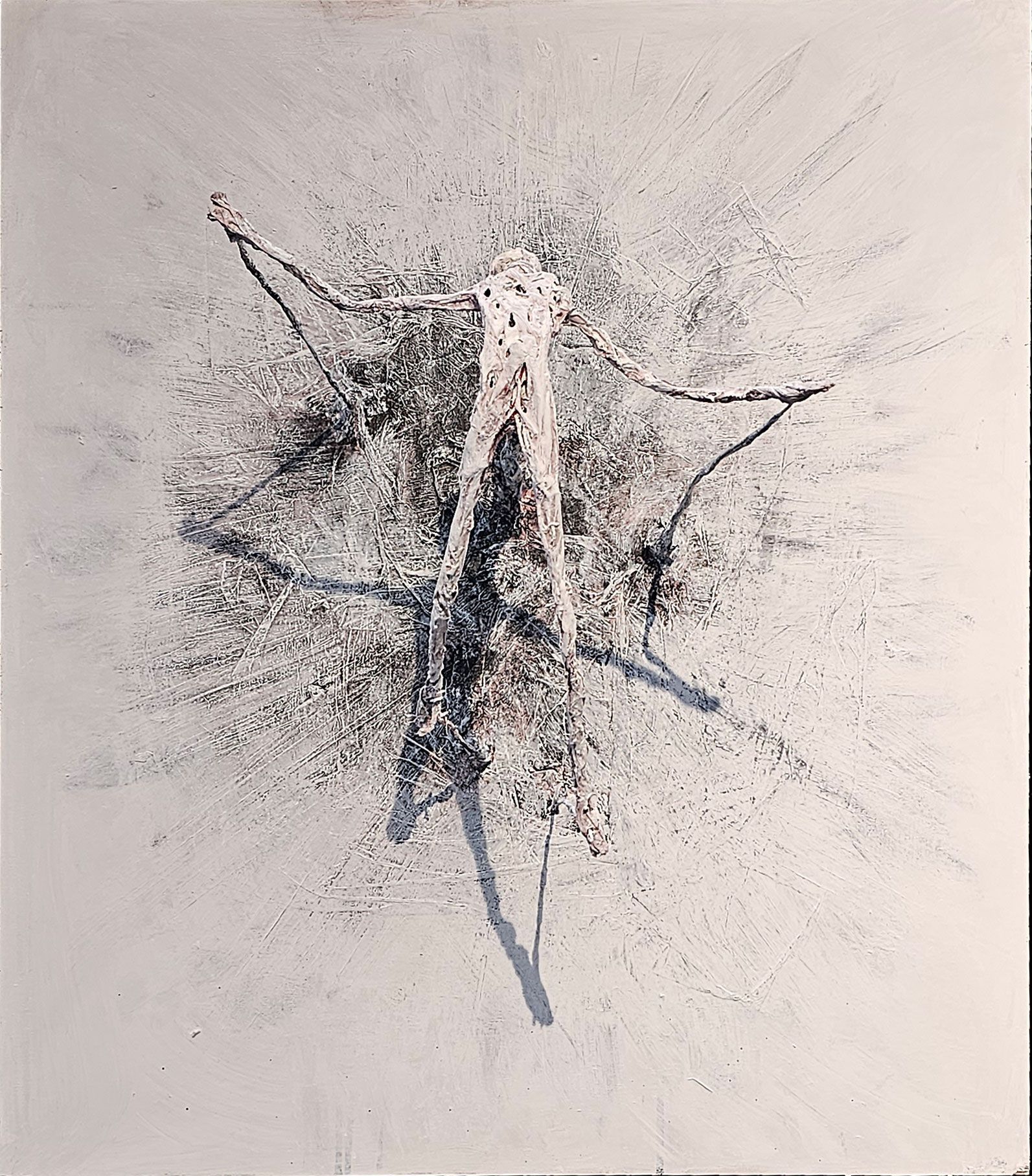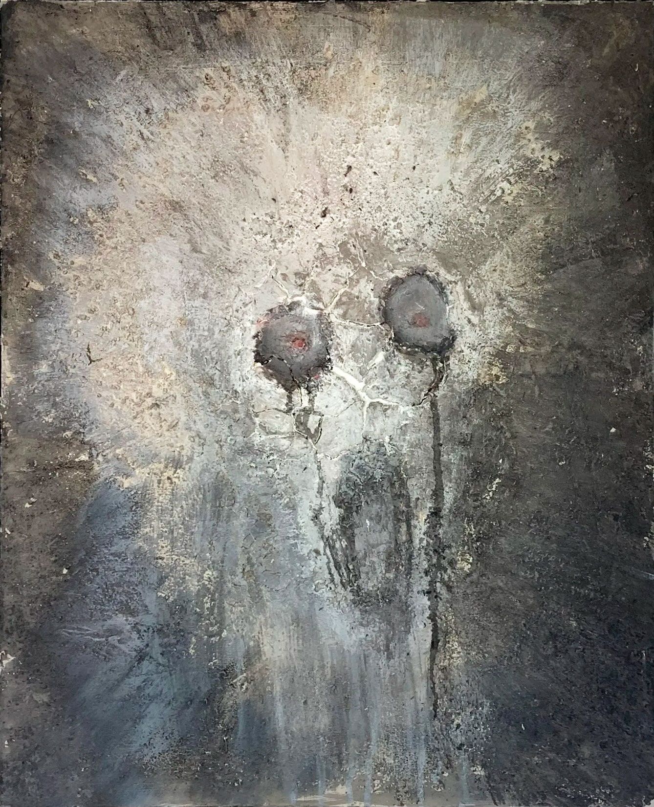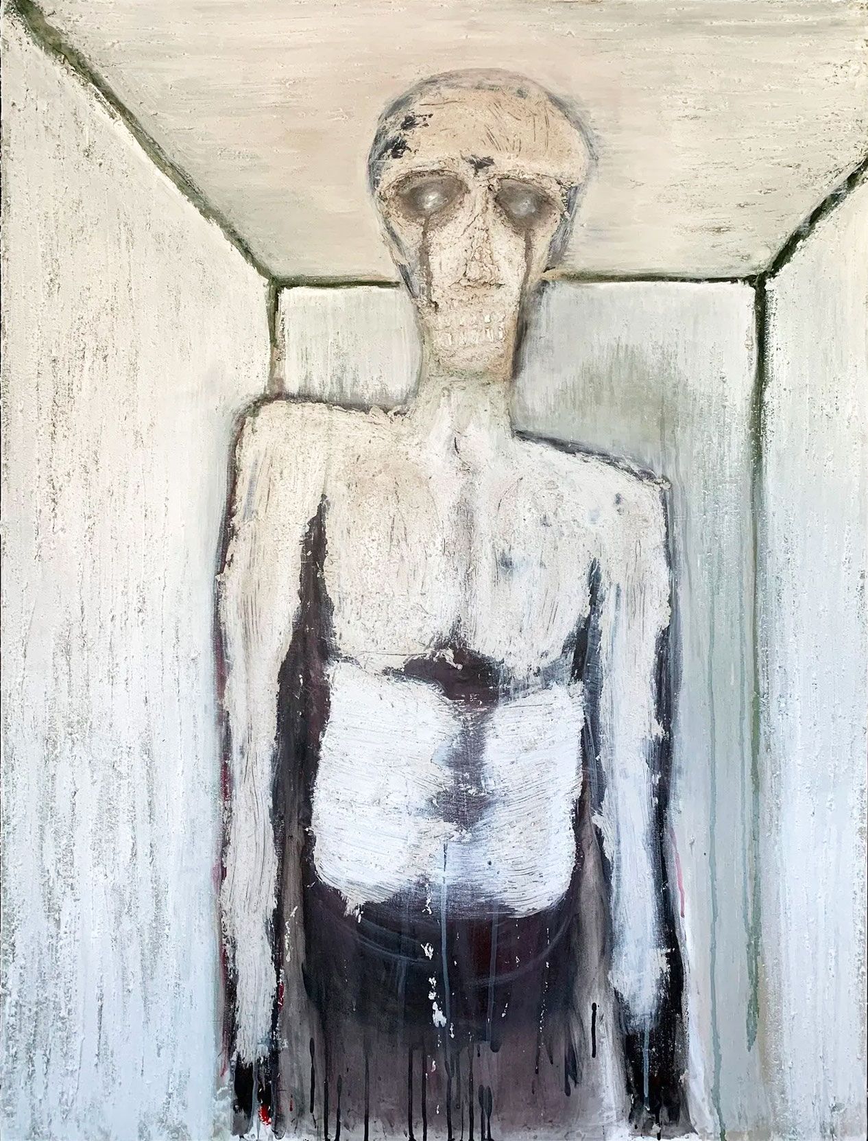 Un cri. Un cri dans la nuit. Un cri silencieux, un cri peint. Ciselé.Vêtu d’absence et de souffrance. Un cri qui vit, qui vibre. Qui fait vibrer. Terreurs enfantines emmenées vers des rivages adultes. L’indicible, pourtant, fait vaciller l’artiste. Et nous avec lui. Il nous emmène dans sa danse. Il se reprend, nous surprend, doute, rage, pleure, recommence. Errance. Et soudain, l’image apparaît, jaillit, surgit sans crier gare, au coin de la nuit. Avec une puissance qui déménage. Qui dérange et nous amène vers un destin. Un destin humain. Le nôtre. Le sien. Celui de chacun. Présent et devenir se donnent la main. Sa peinture est un dessein brut. Il s'appelle Yox. Ses tableaux et lui nous attendent pour un brûlant voyage intérieur ou, peut-être, une manière décalée de sonder avec bonheur le mal-être existentiel en confrontant l'individu à l'implacable marche de l'univers.''.
