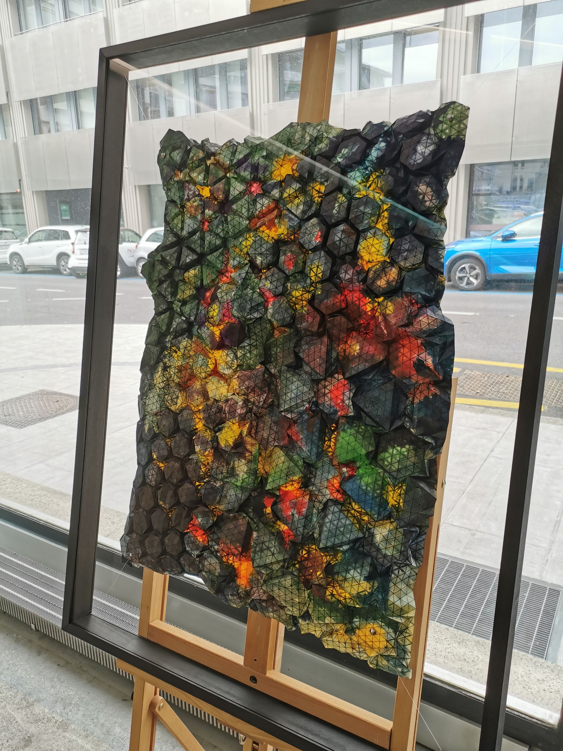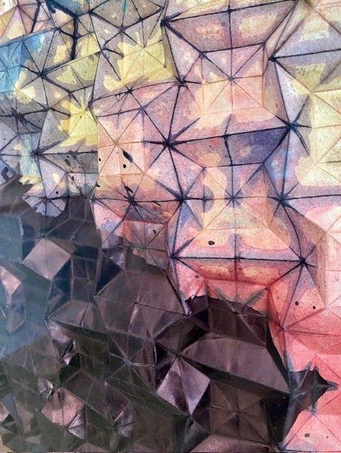 Sa pratique artistique actuelle est le fruit du métissage des techniques de l'origami et de celles de la lutherie. Le premier pas fut d'appliquer, un peu par hasard, les calculs de proportion que l'on emploie pour fretter la touche d'une guitare, et par la suite le travail de la couleur avec encres et teintures a ouvert devant lui une voie qui à sa connaissance n'avait pas été parcourue avant.