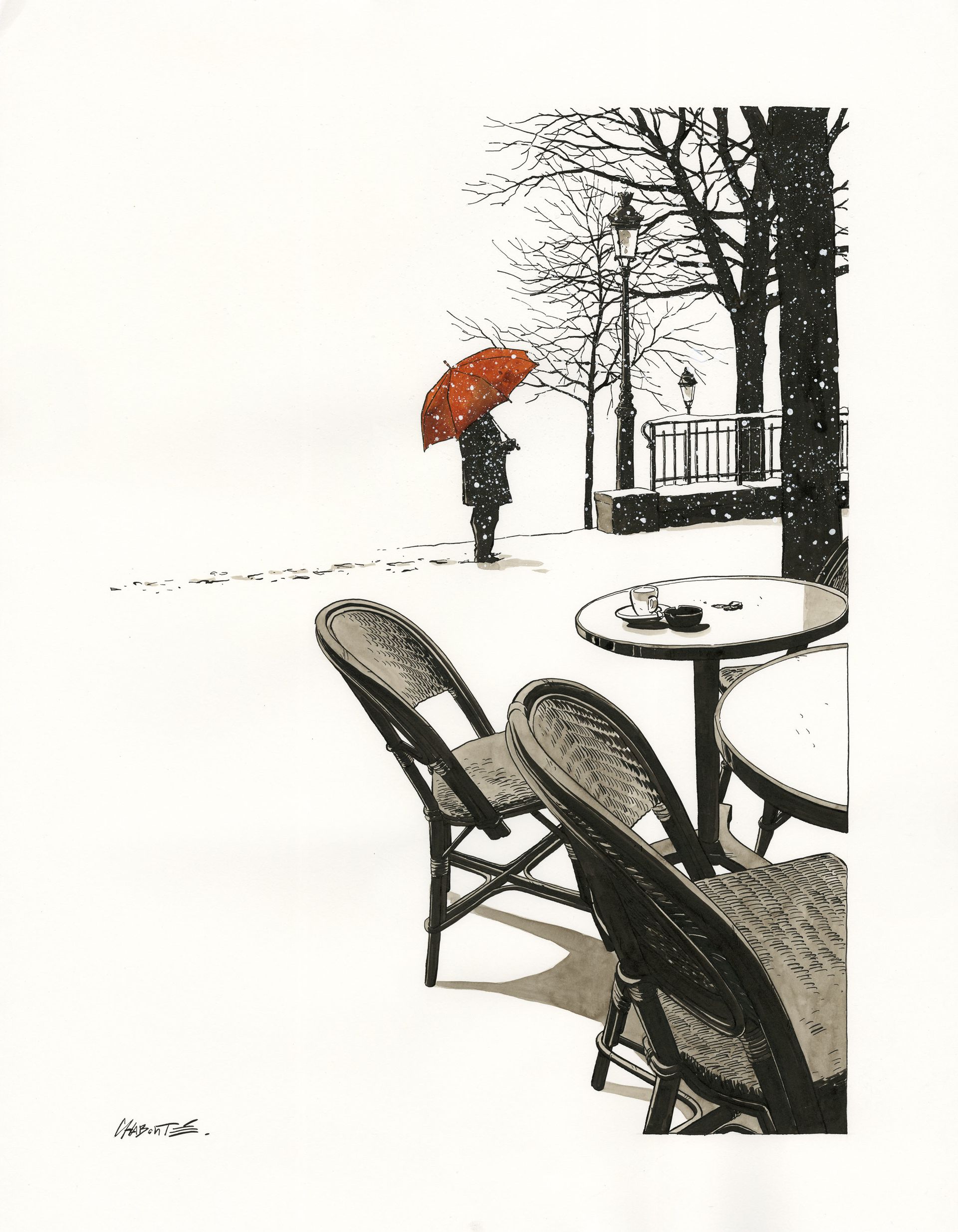 Jamais satisfait de son travail, l'artiste cherche l'émotion pure au fond de l'encrier. Il excelle dans cette discipline honnie de la plupart de ses confrères : l'encrage.