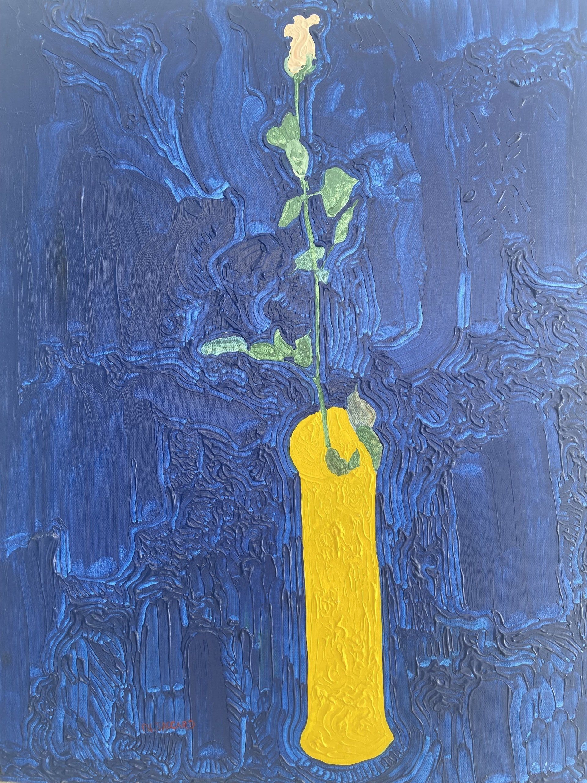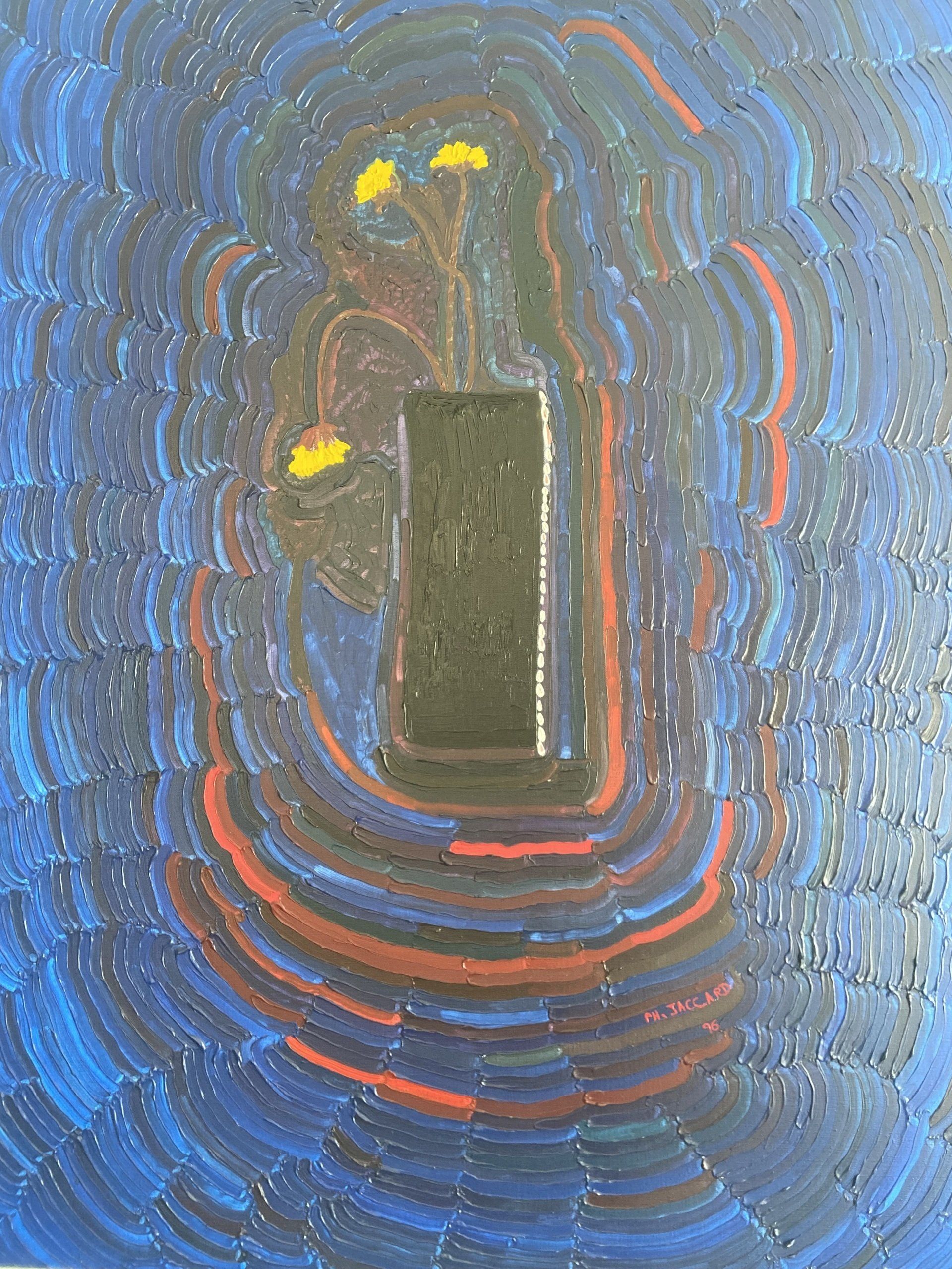 If Philippe JACCARD is a self-taught and tormented artist, he is above all inspired and fascinated by the great modern and contemporary artists of art history. He tries to tame them and understand them by getting closer to their artistic approach to the point of conceptualisation. He enjoys revisiting them with his lively and frenetic brush strokes, but it is in his world that he takes us. A world populated by portraits and self-portraits, still lifes, views in which chairs, vases, flowers mark out our path in the meanderings of his thought.