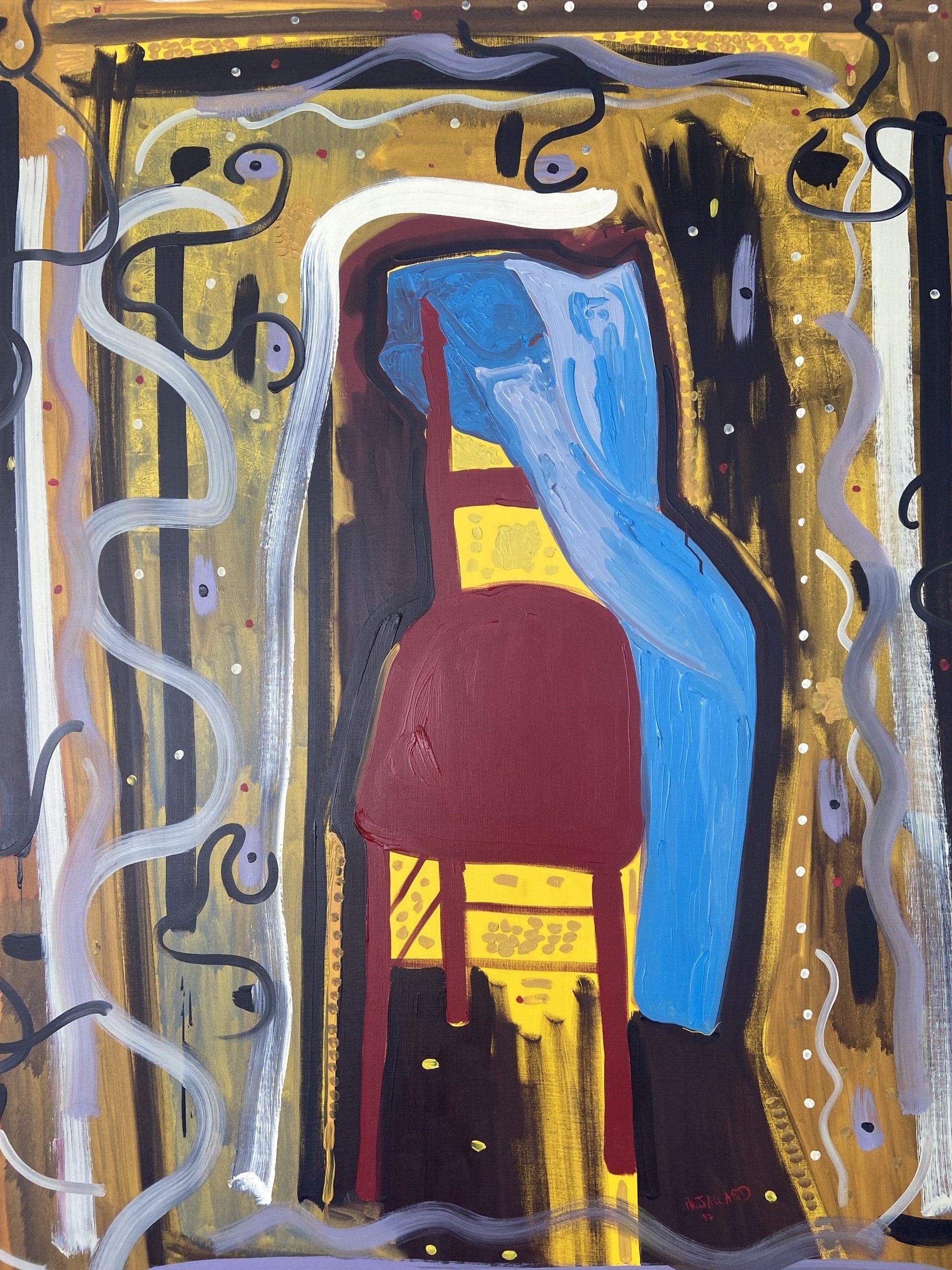 Certainly, JACCARD channels his emotions, his creative force and his energy into the act of painting. He works the paint in matter which he sometimes applies in successive thick layers or in flat areas to which he gives relief and life.