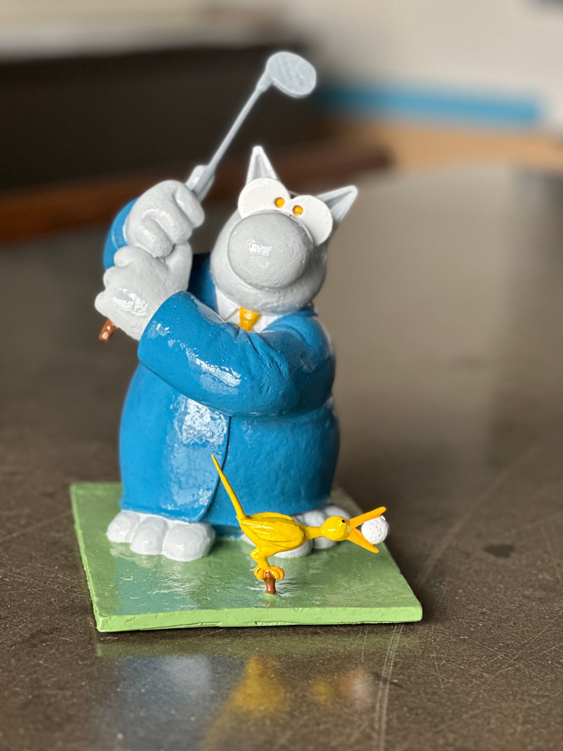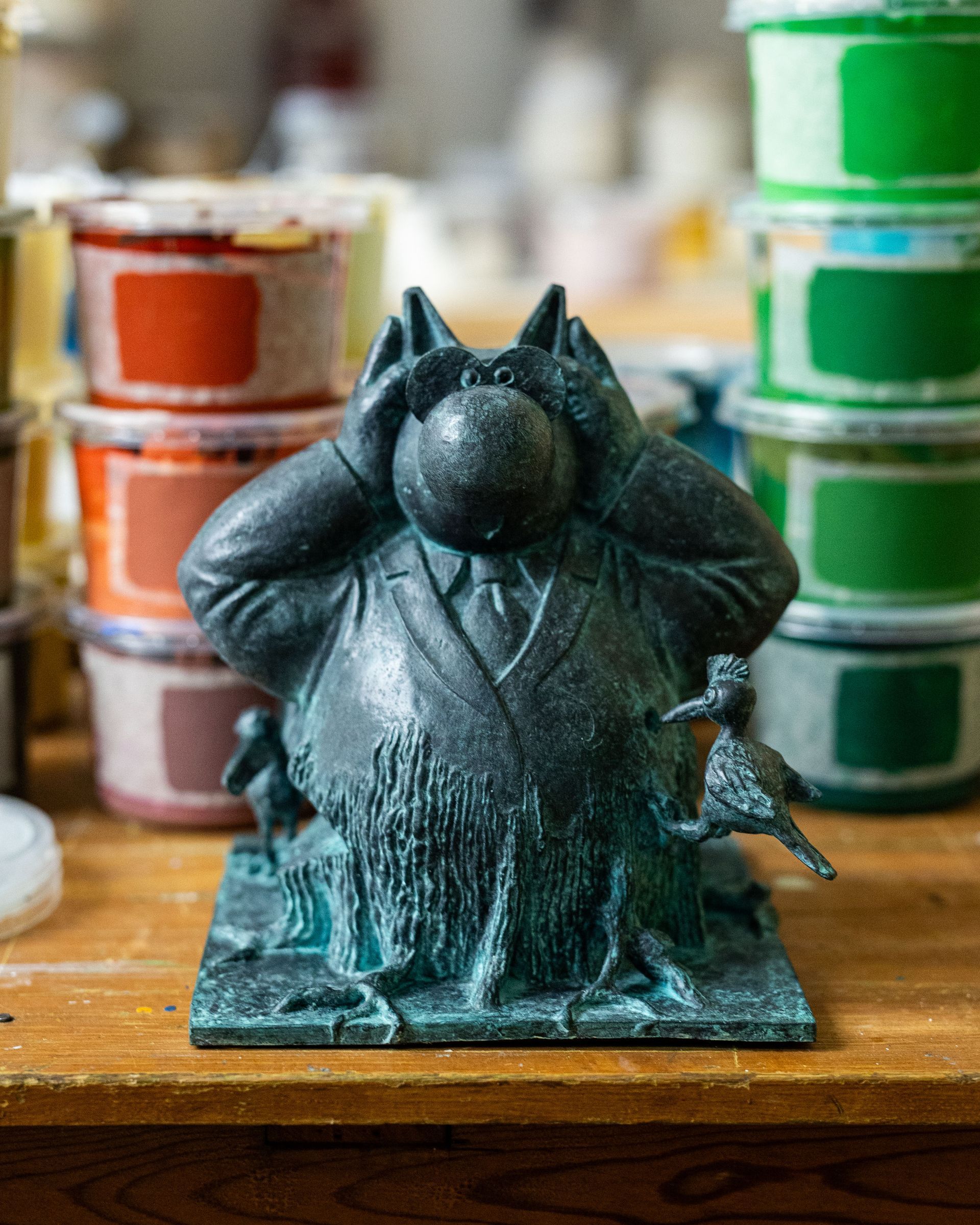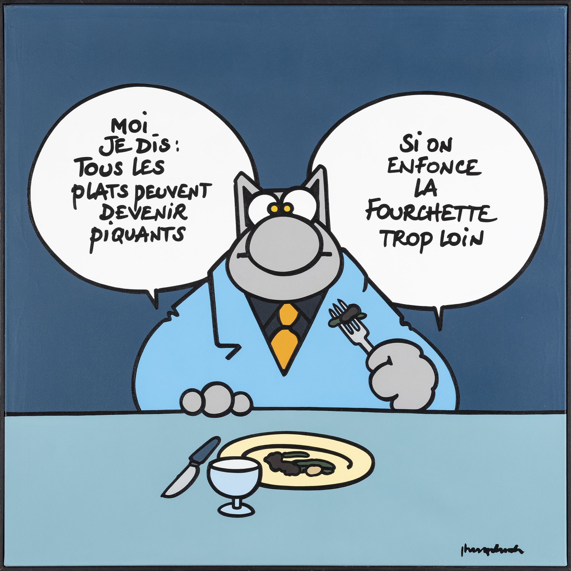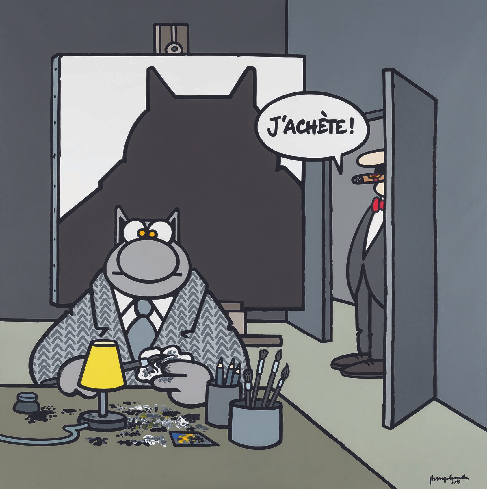 Since 2013, Geluck has also focused on creating monumental bronze sculptures, featuring Le Chat in offbeat situations. These works have been exhibited in several major European cities, arousing great interest.