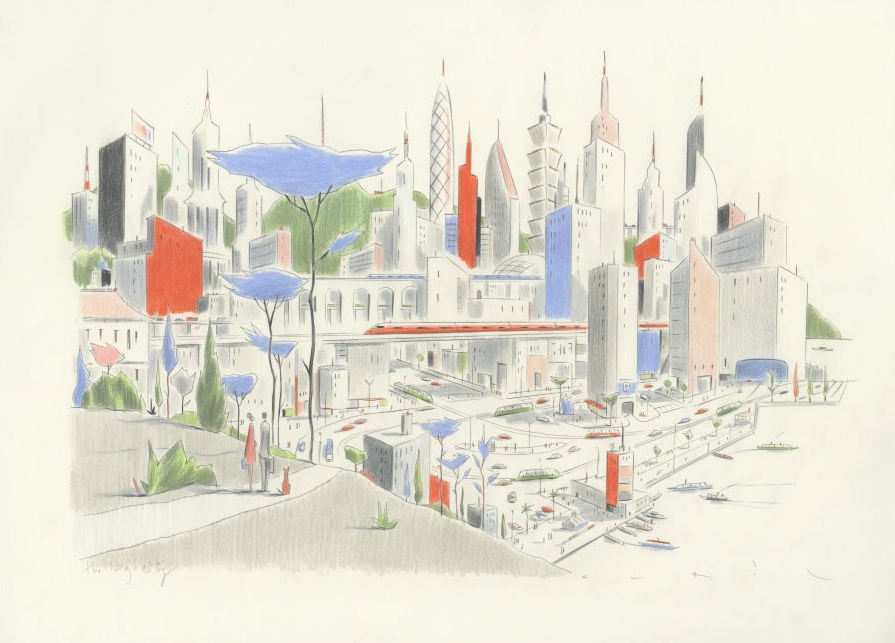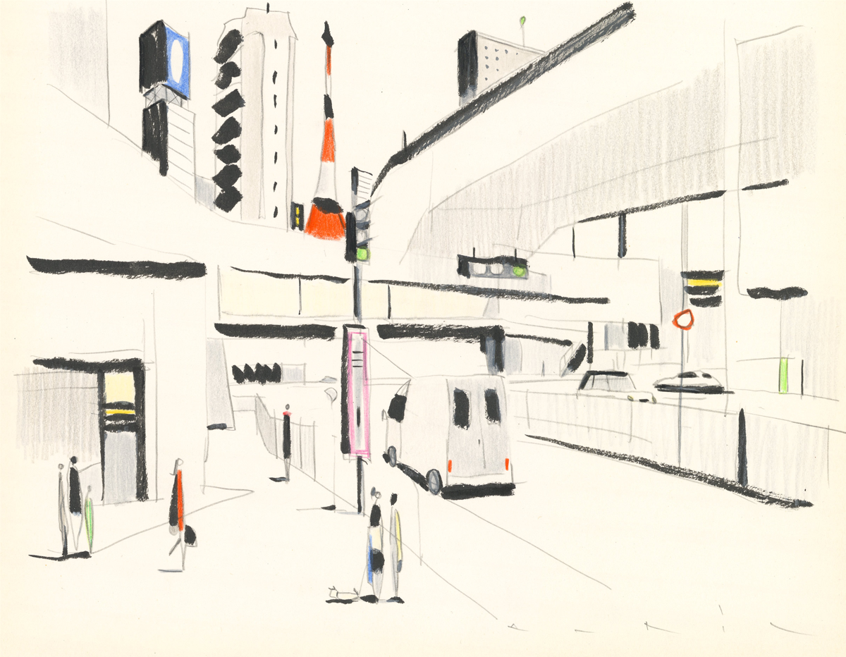 Depuis plus de trente ans, François Avril (Paris, 1961) évolue entre le monde de la bande dessinée et celui de l’Art Contemporain. De ses premières collaborations, dans les années 80, avec la presse magazine et l’édition jeunesse, à l’exposition de ses toiles en galerie, François Avril a développé un style et une écriture graphique forte. Bien qu’il n’ait réalisé que peu albums de bande dessinée au cours de sa carrière, Avril en retient la rigueur de la composition, la force du trait noir et la stylisation. Parallèlement à l’influence qu’a exercé le 9ème Art sur son travail, notamment Chaland ,Hergé, Moebius, Herriman ou Macherot, Avril accorde une grande attention aux œuvres de Saul Steinberg, Giorgio Morandi, Edward Hopper, Serge Poliakoff, Lionel Feininger ou Bram van Velde. Puisant son inspiration dans l’observation des villes et des paysages, François Avril livre à travers ses œuvres une vision poétique et renouvelée de la réalité. L’esthétique graphique et la rigueur de ses compositions ont fait de lui un artiste à l’identité remarquable. En dessin comme en peinture, les villes demeurent l’un de ses sujets de prédilection. Plus qu’une destination c’est l’idée d’une ville que François Avril aime raconter. Des jeux de construction, de perspectives et de lignes de fuite qu’il aime assembler. Adoptant le point de vue du promeneur solitaire, il recrée le décor d’une cité fantasmée où le temps et le bruit semblent s’arrêter. Une magie qu’il décline en différents lieux comme Tokyo, New-York ou Bruxelles. Finalement peu lui importe la destination, puisque celle qu’il représente n’existe pas.