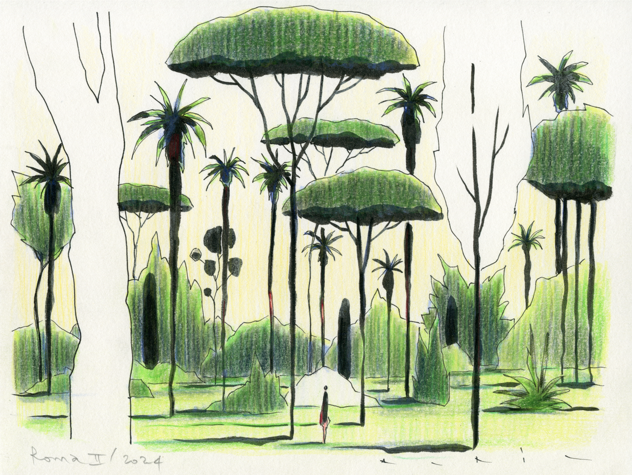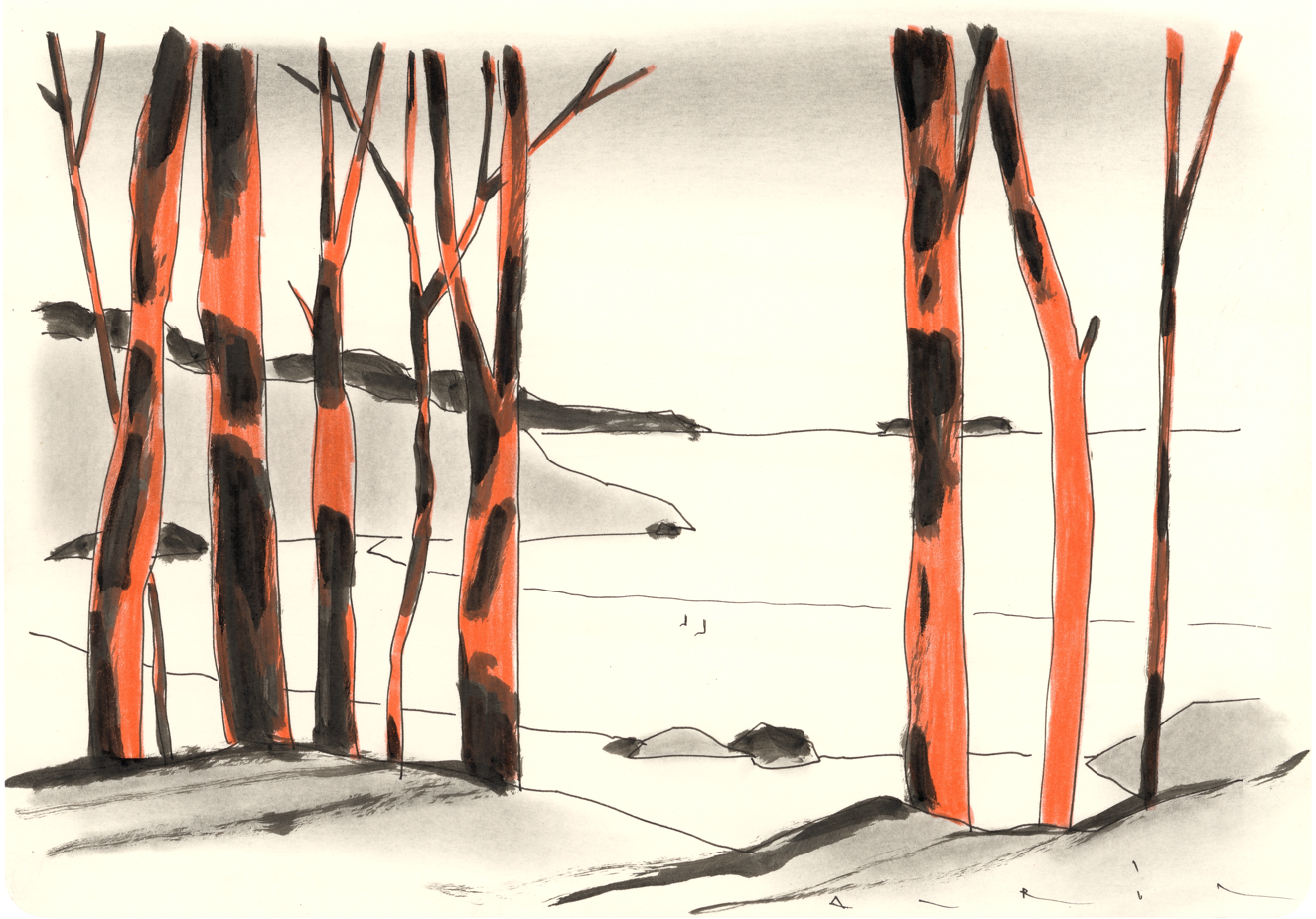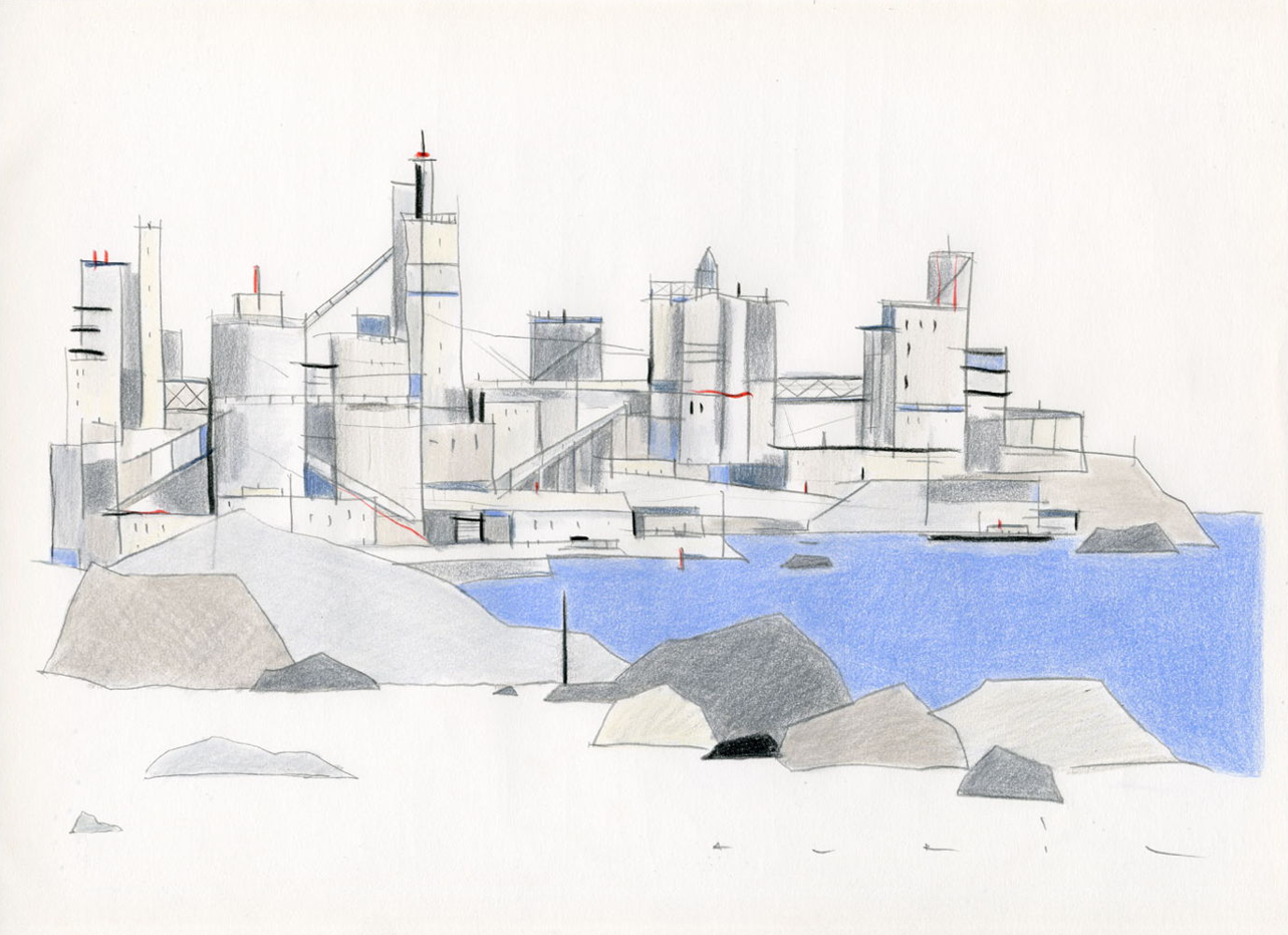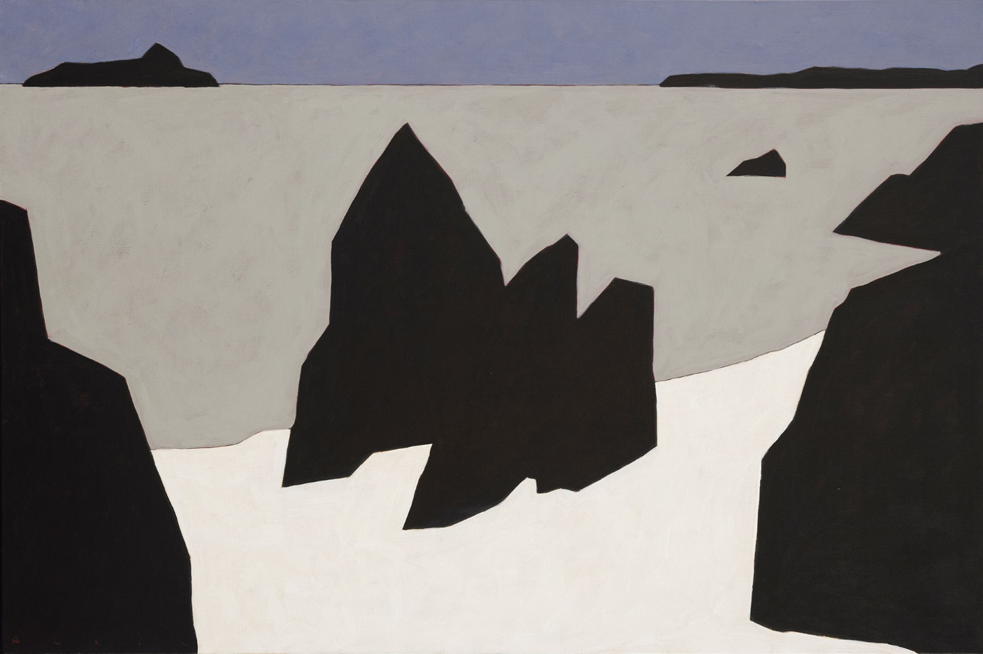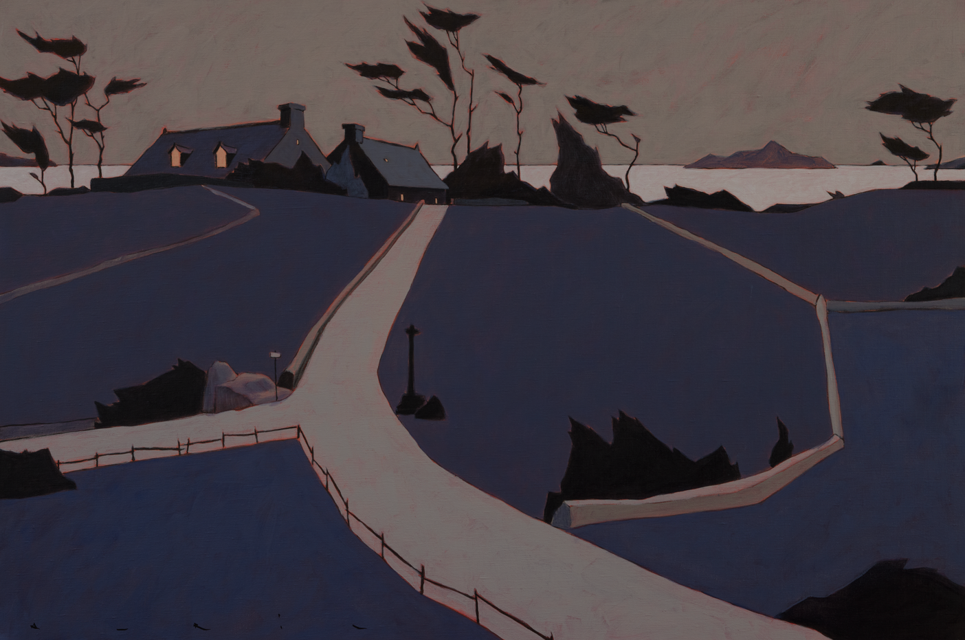 A l’instar des grandes cités, les côtes bretonnes nourrissent également l’œuvre de l’artiste. A la façon des villes qu’il rationnalise, les paysages d’Avril sont réinventés au profit d’une composition de volumes et de lignes harmonieuses. La mer est ainsi maitrisée, les falaises sculptées et les arbres structurés. L’imaginaire et le souvenir ont autant de place dans l’esprit de l’artiste que les lieux qu’il représente. Il serait alors difficile de ne pas voir dans un même paysage, plutôt que la Bretagne, peut-être l’Islande, l’Ecosse, la Grèce, l’Italie ou les côtes des Etats-Unis. Paysage intérieur ou ville-âme ? L’univers d’Avril s’équilibre entre réalisme et abstraction, entre ligne et volume, entre monochrome et couleurs. Une harmonie graphique subtile aux frontières fragiles. « Qu’il s’agisse de ville ou de paysage, je pars toujours de quelque chose de réaliste que je recompose pour créer des utopies. J’observe et c’est la mémoire qui fait son travail de sélection. De retour à mon atelier, je ne dispose plus que d’un résidu de ce que j’ai vu. Je ne garde qu’une composition forte et les détails disparaissent. C’est pour toutes ces prises de liberté avec mon sujet, réaliste, qu’on peut penser que je suis à la limite de l’abstraction. » François Avril.