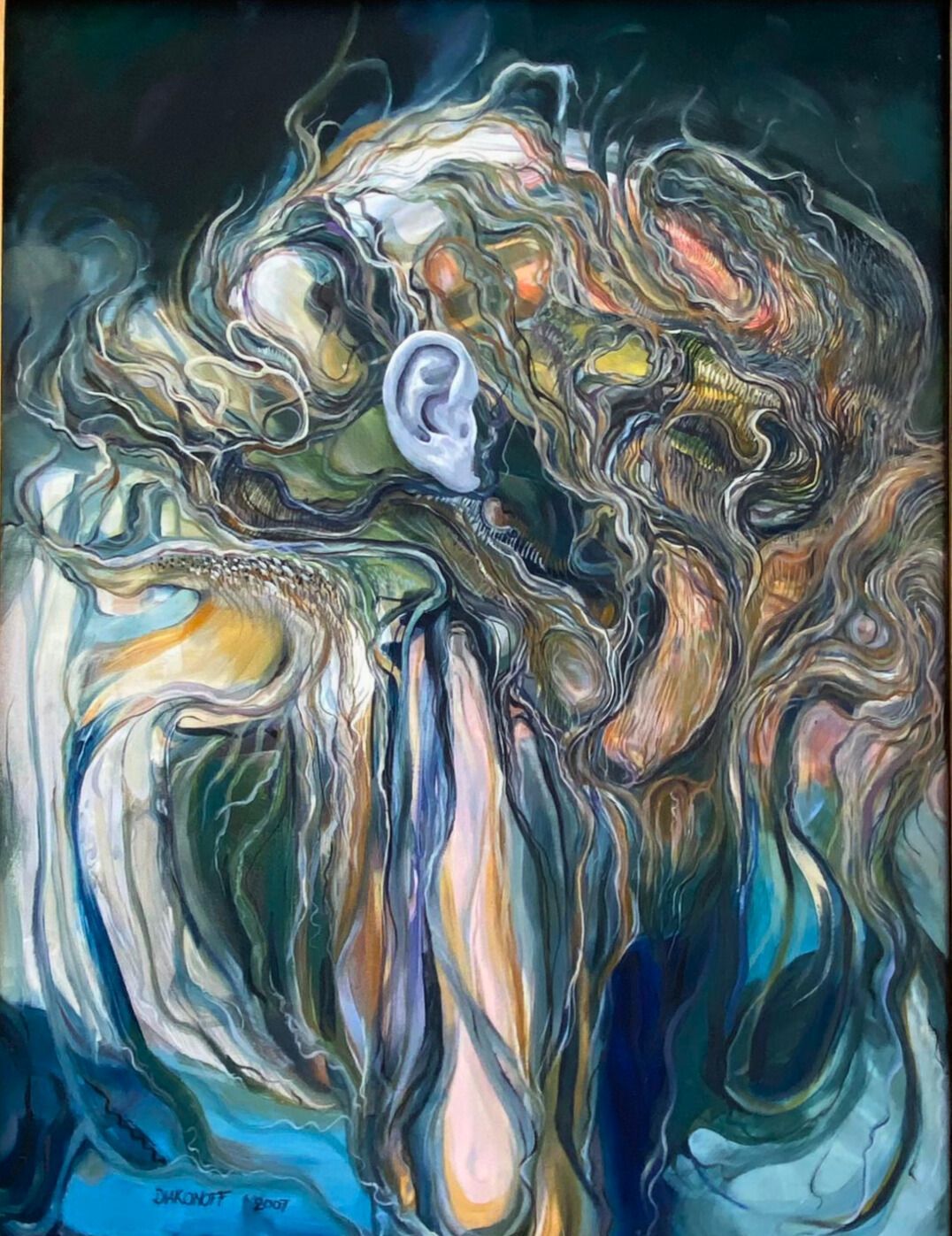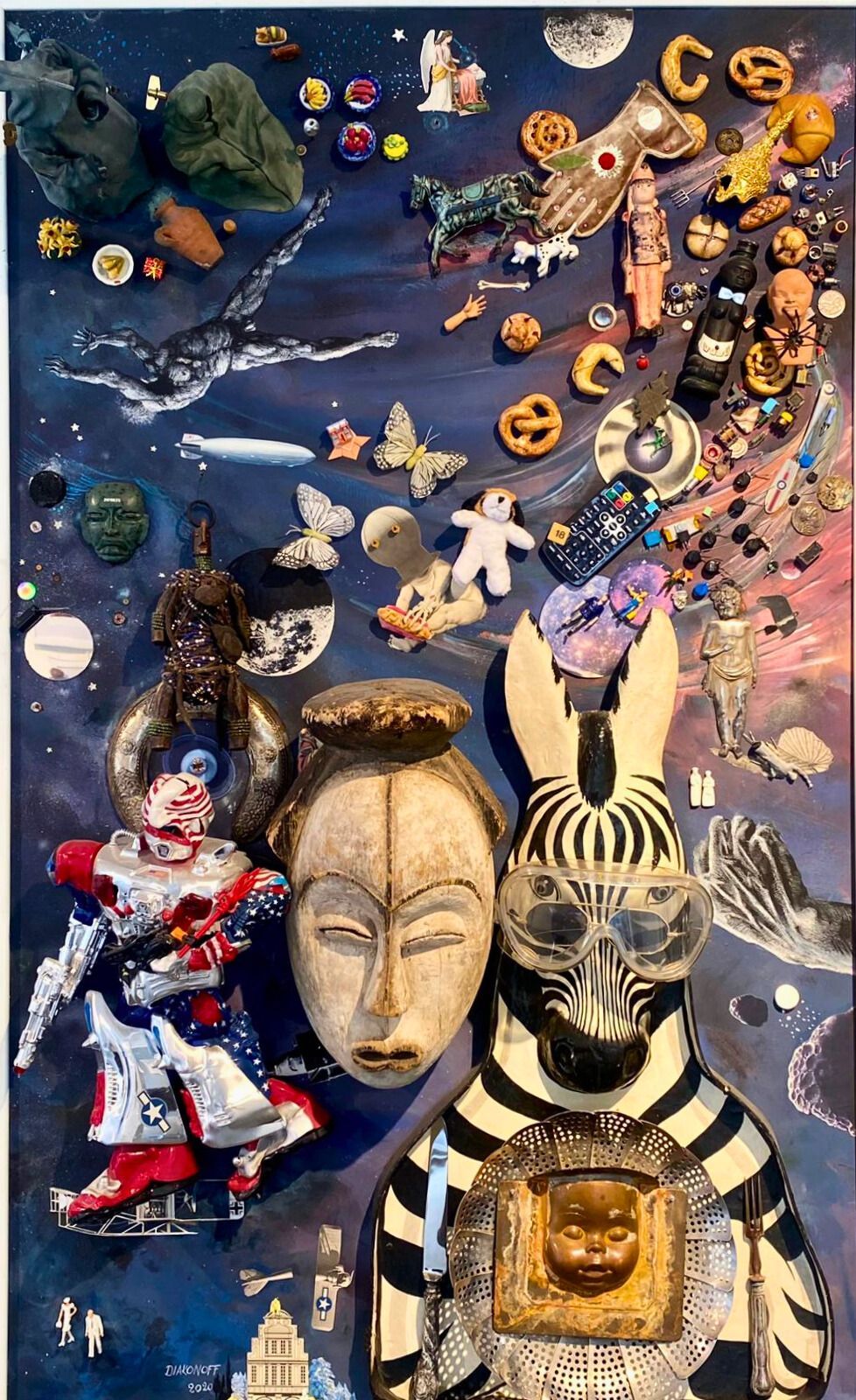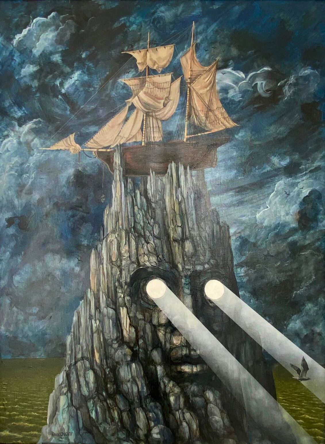 Dès ses débuts, Serge Diakonoff se distingue par sa fascination pour l’univers du fantastique et des objets oniriques, créant des compositions où se mêlent mystère, poésie et audace. Né à Genève en 1933 de parents russes, il se forme aux Beaux-Arts et aux Arts décoratifs, avant de marquer les scènes locales par ses décors théâtraux et télévisuels. Son art, déjà empreint d’une esthétique hors du commun, puise dans les masques, les costumes et les visages transformés, annonçant une carrière dédiée à l’étrange et au merveilleux.